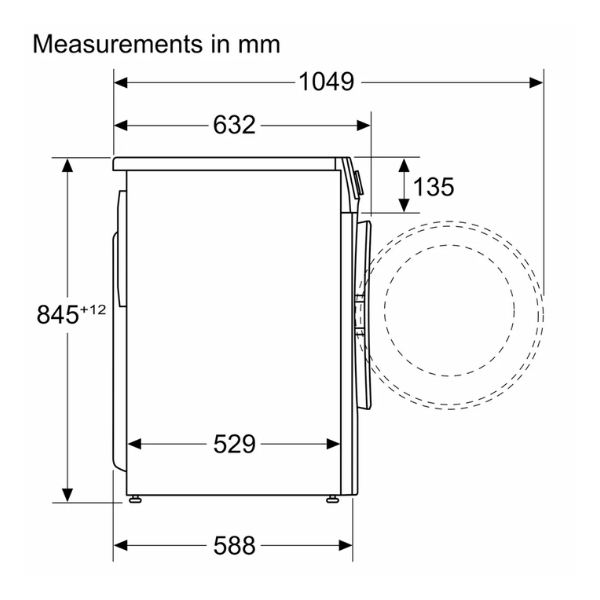• Dimensions: 845 x 598 x 588 mm